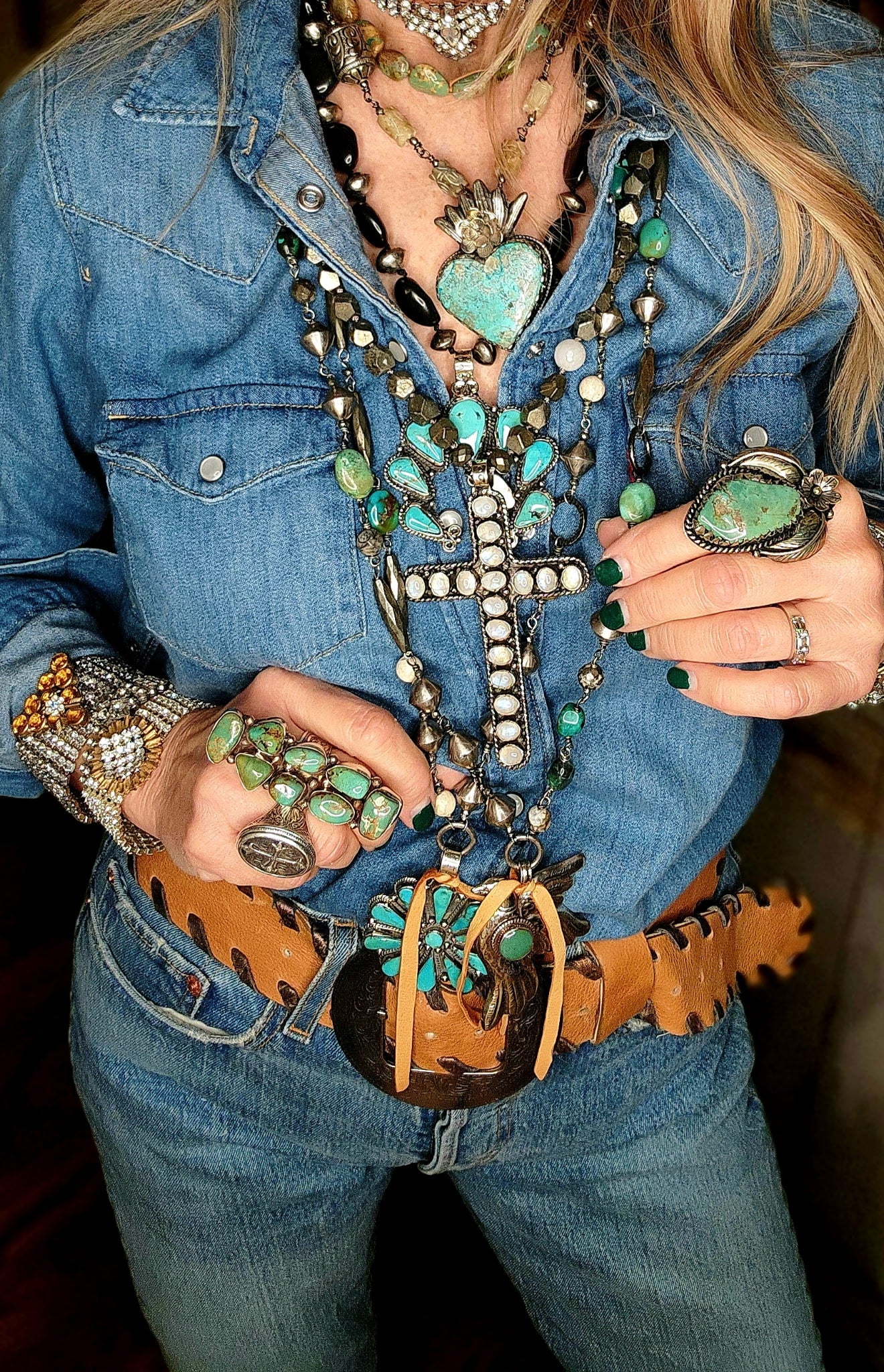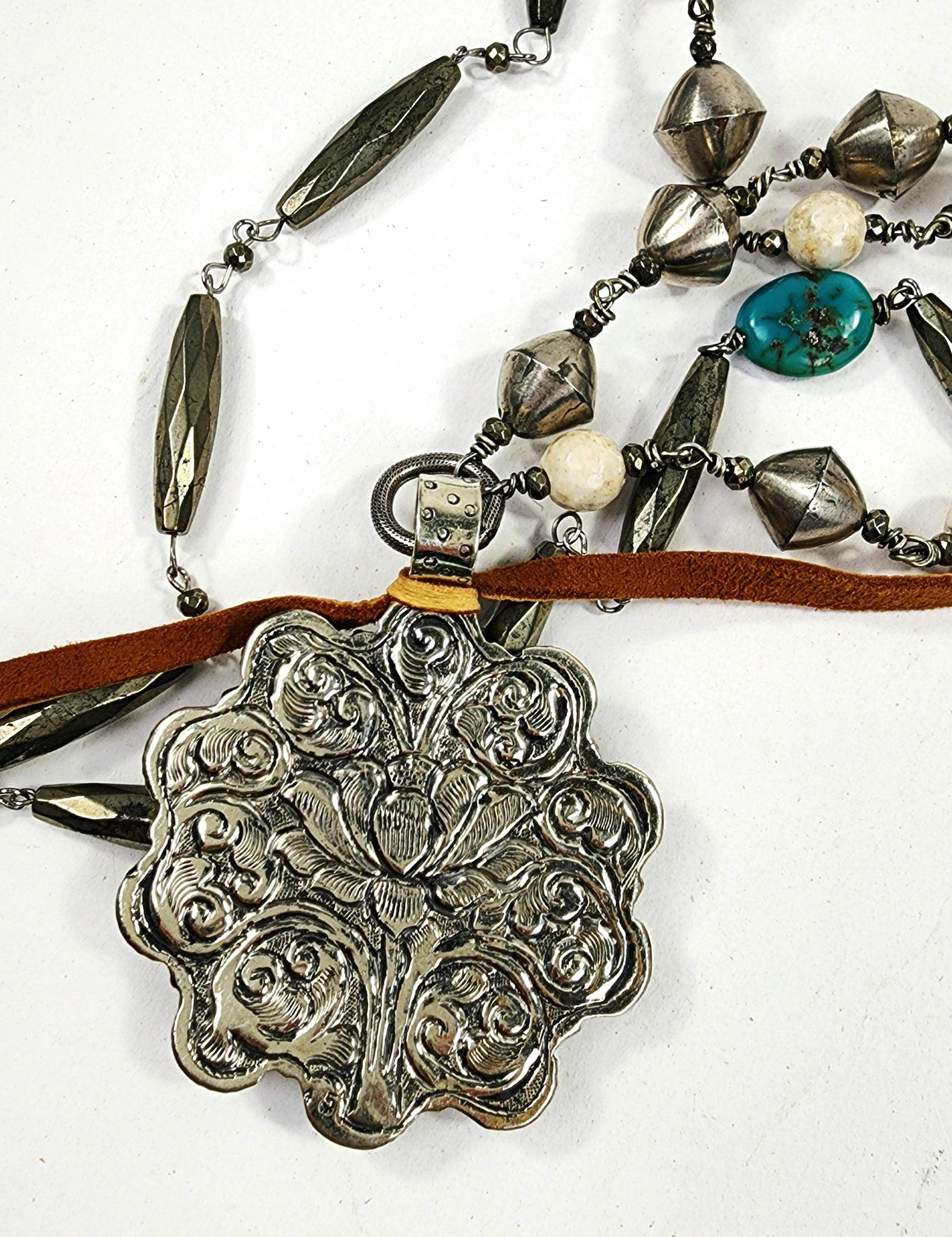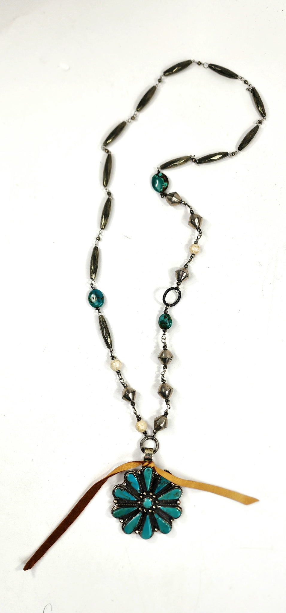 Approximately 36" plus 3" silver/turquoise cacti flower