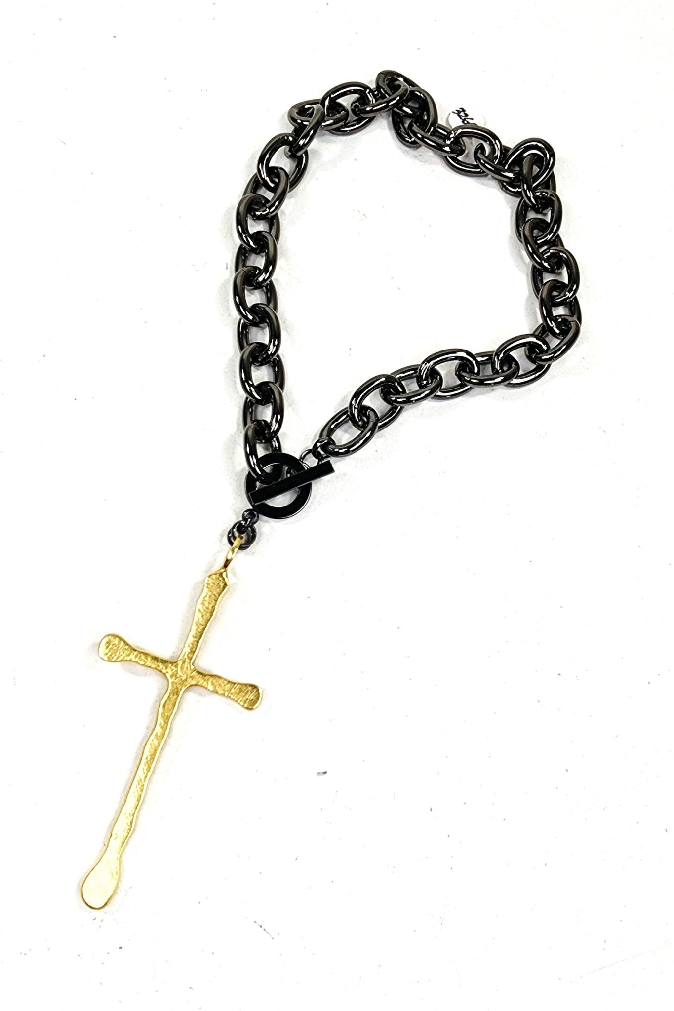 Chunky aluminum chain in gunmetal with matching toggle clasp. lightweight. Solid