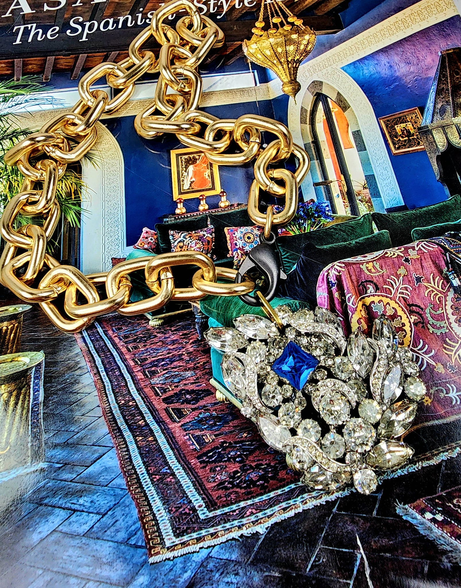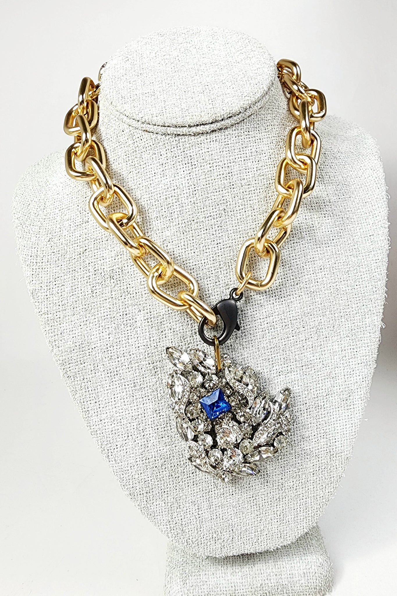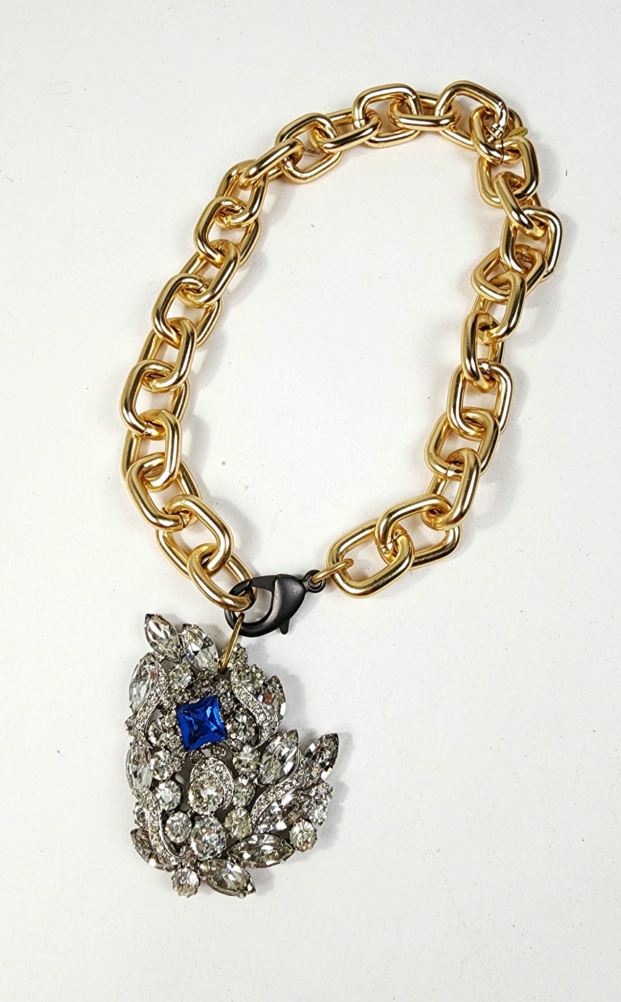 Chain is nice and chunky but very lightweight. Solid links. Matte gunmetal clasp.