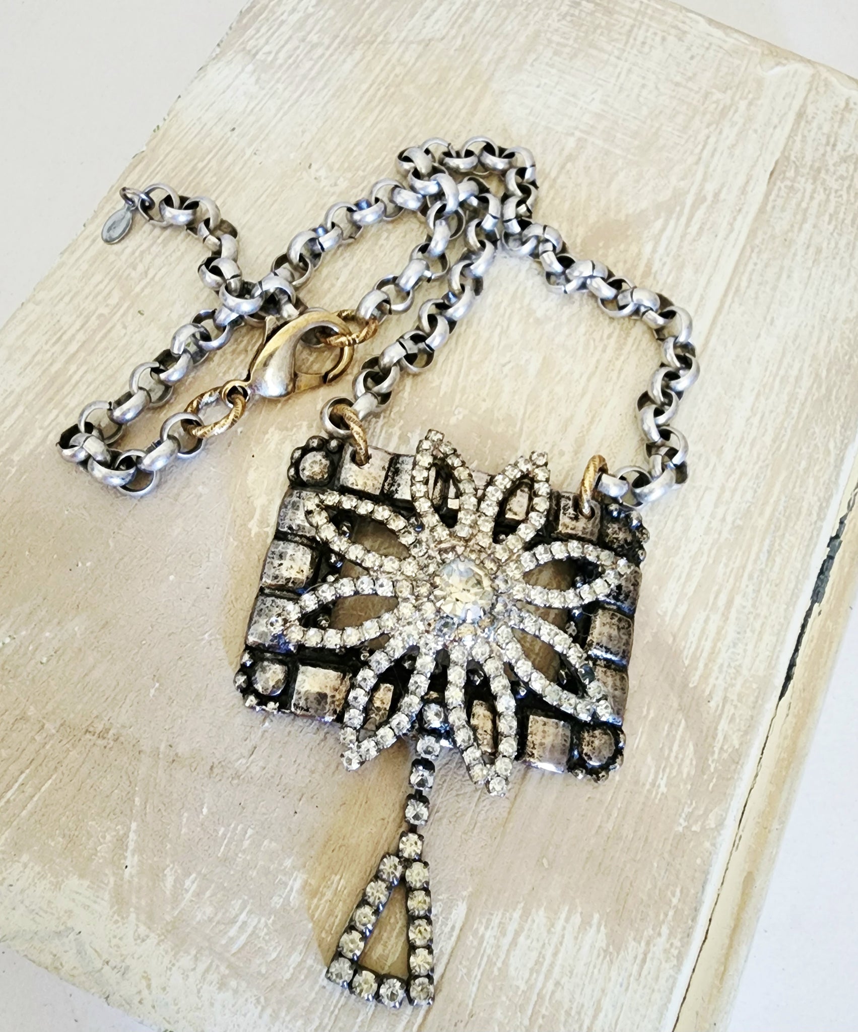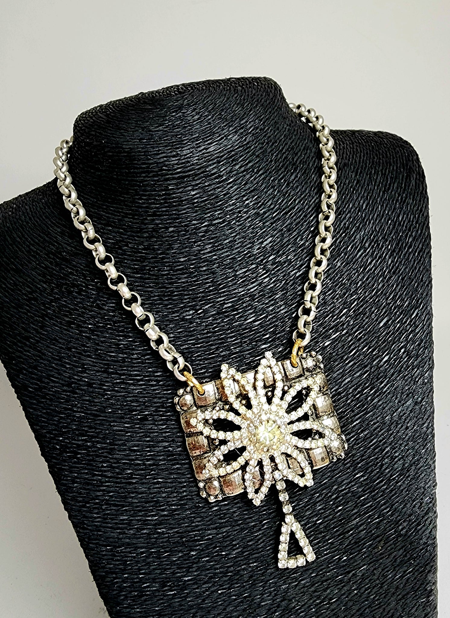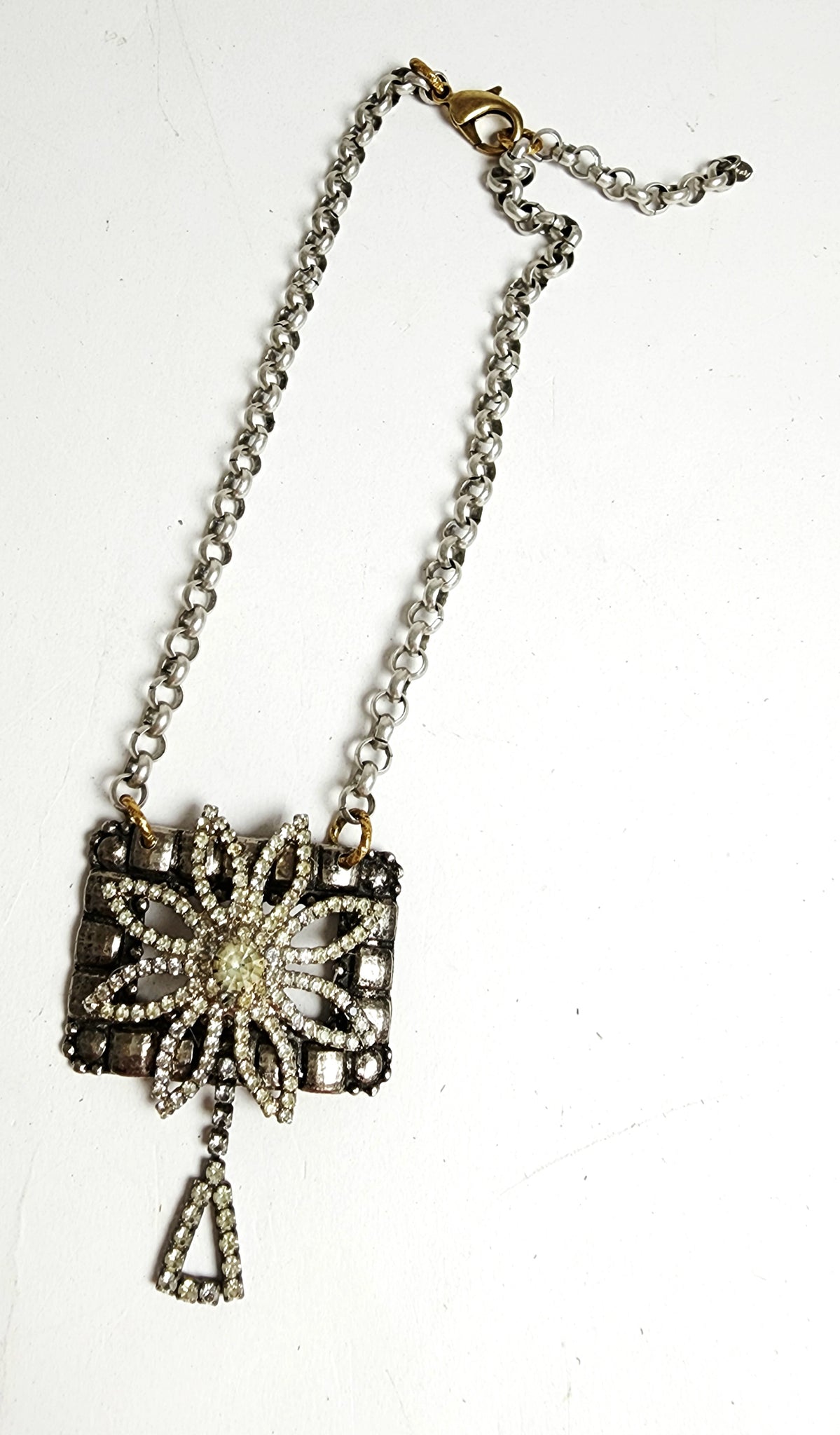 Vintage Metal shoe buckle with rhinestones on a mixed metal chain