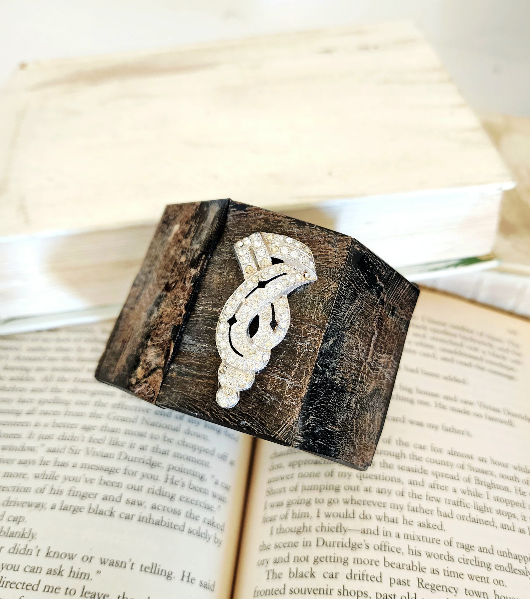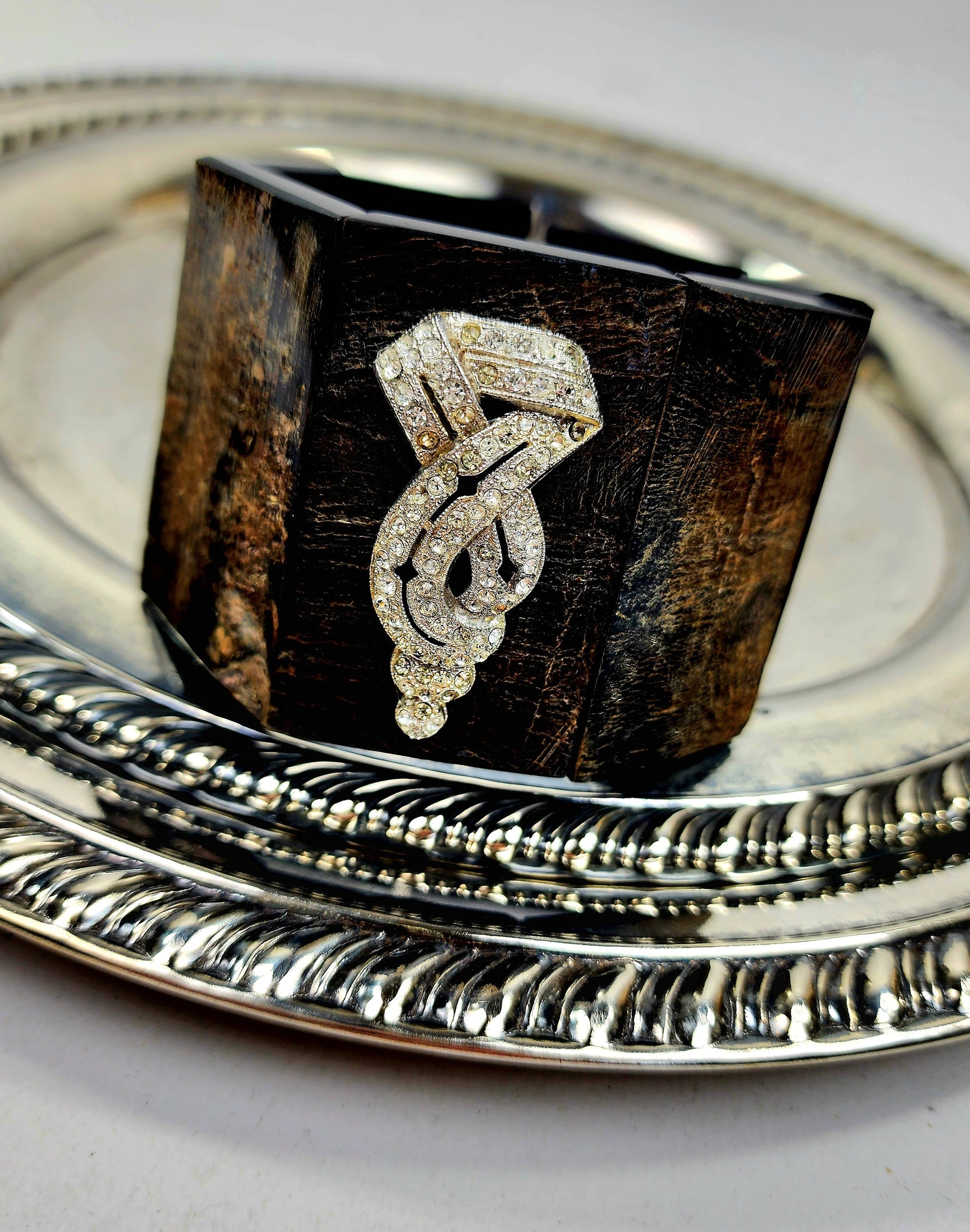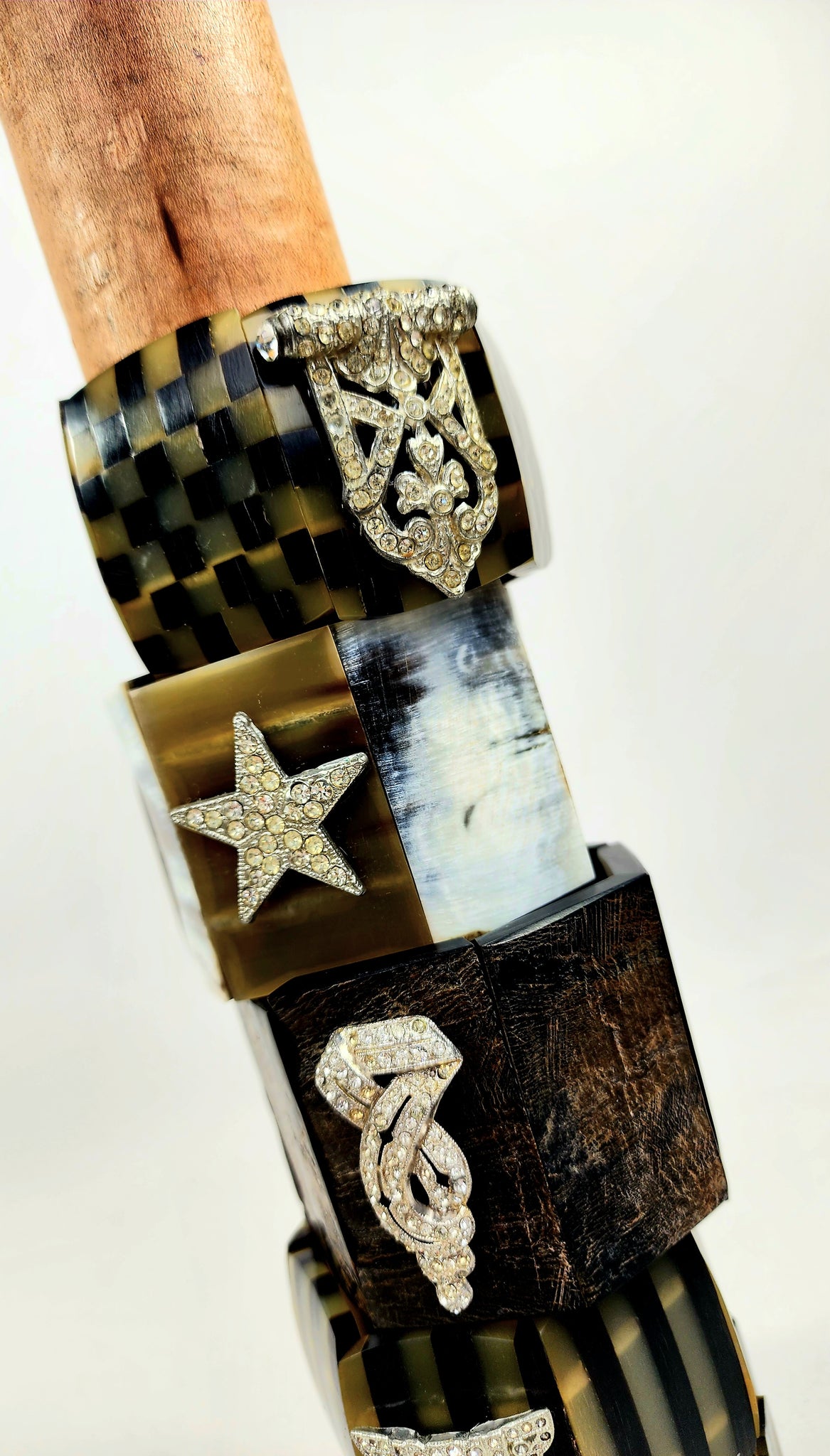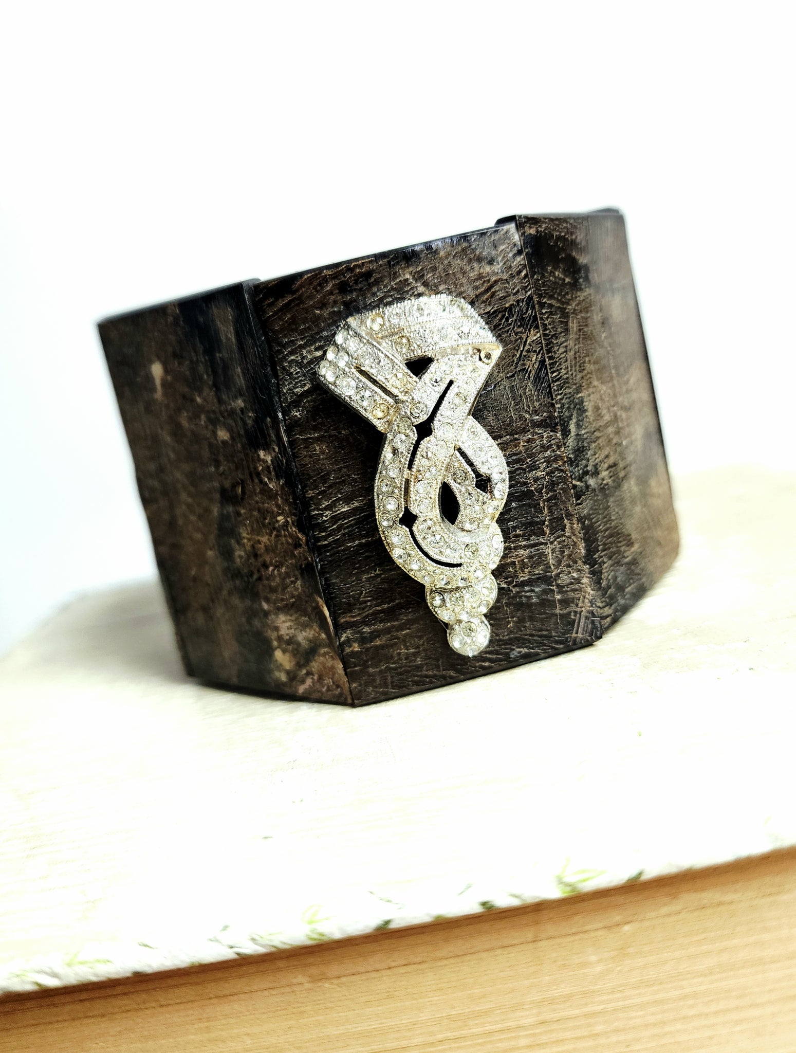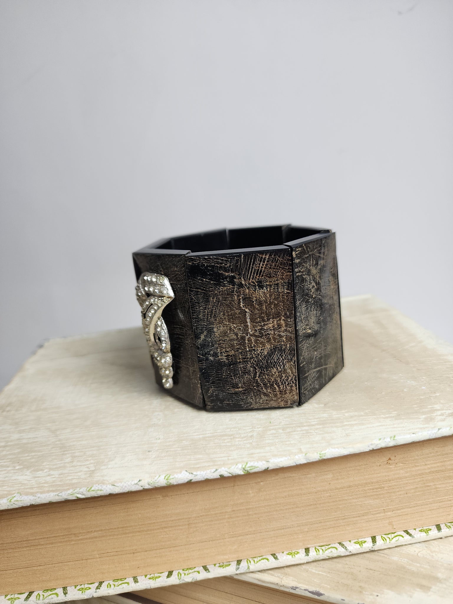 Stretchy bracelet made of horn with a vintage rhinestone clip