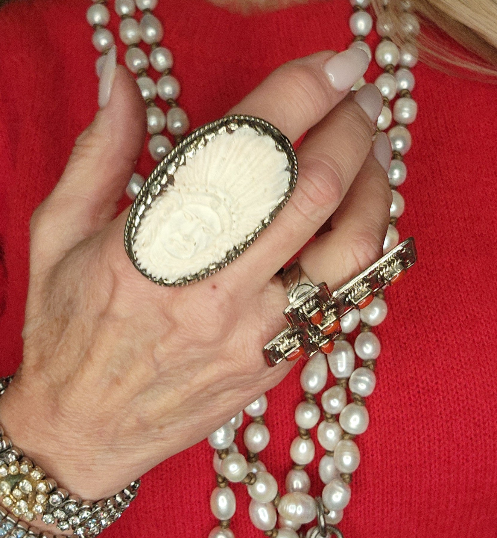 Silver/Carved bone